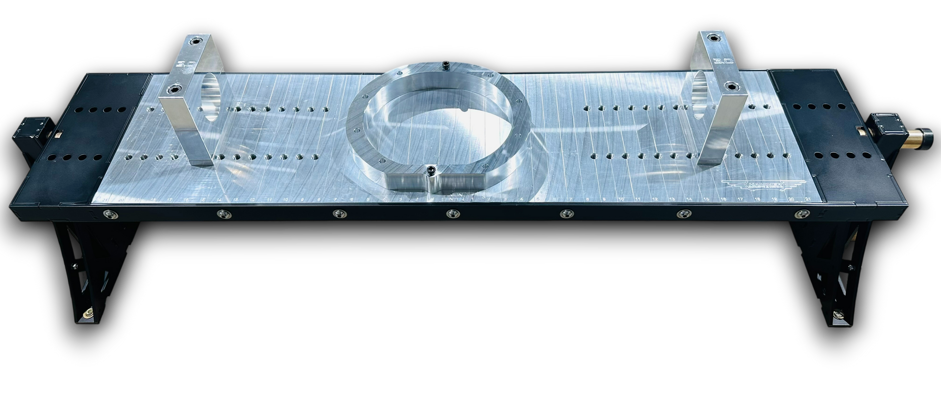 - Table pivot is 14” above mounting surface allowing longer 4 link brackets to not have clearance issues when revolving the fixture top