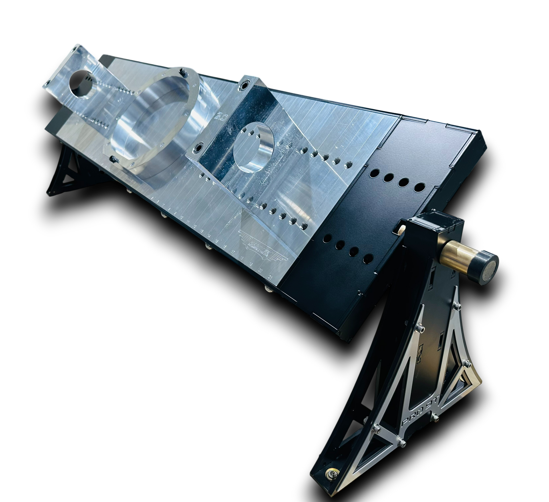 Designed specifically to precisely assemble FAB 9 rearends for those that are on a budget or limited on shop space. Breaks down in approx 1 minute into 3 pieces for storage. Compatible with 2” center hole spacing fab tables or any bench top. Although it is less expensive than our floor model, materials, craftsmanship, and precision have not been sacrificed. Typically 2 weeks to delivery.