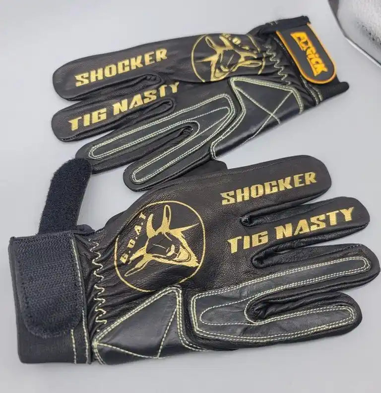 SHOCKER / TIG NASTY series are constructed with premium goat Leather and Kevlar stitching and incorporates a Velcro strap, padded palm and Doublers in key areas.
