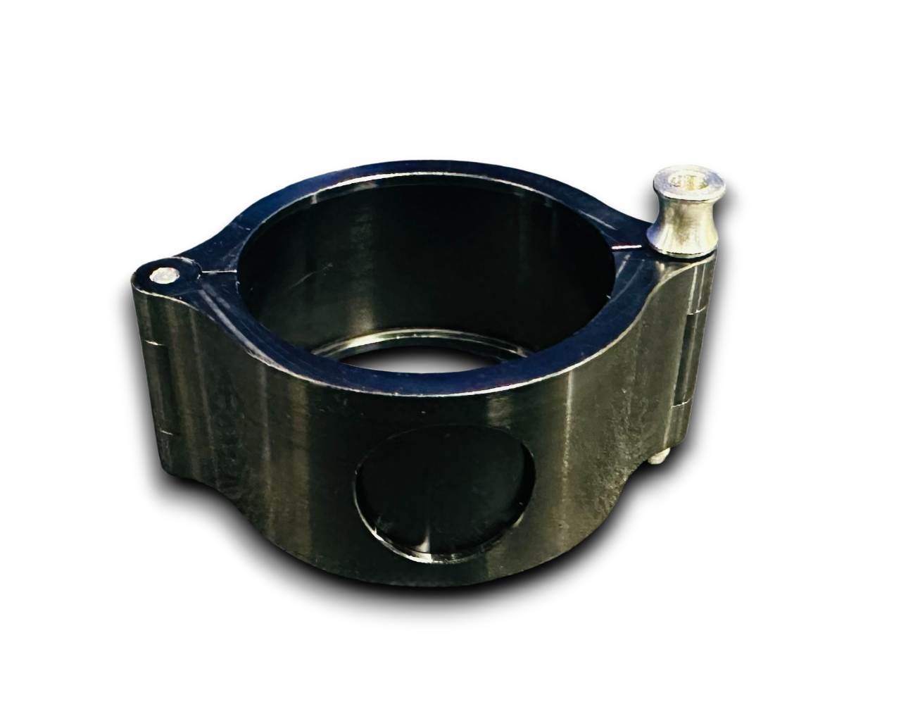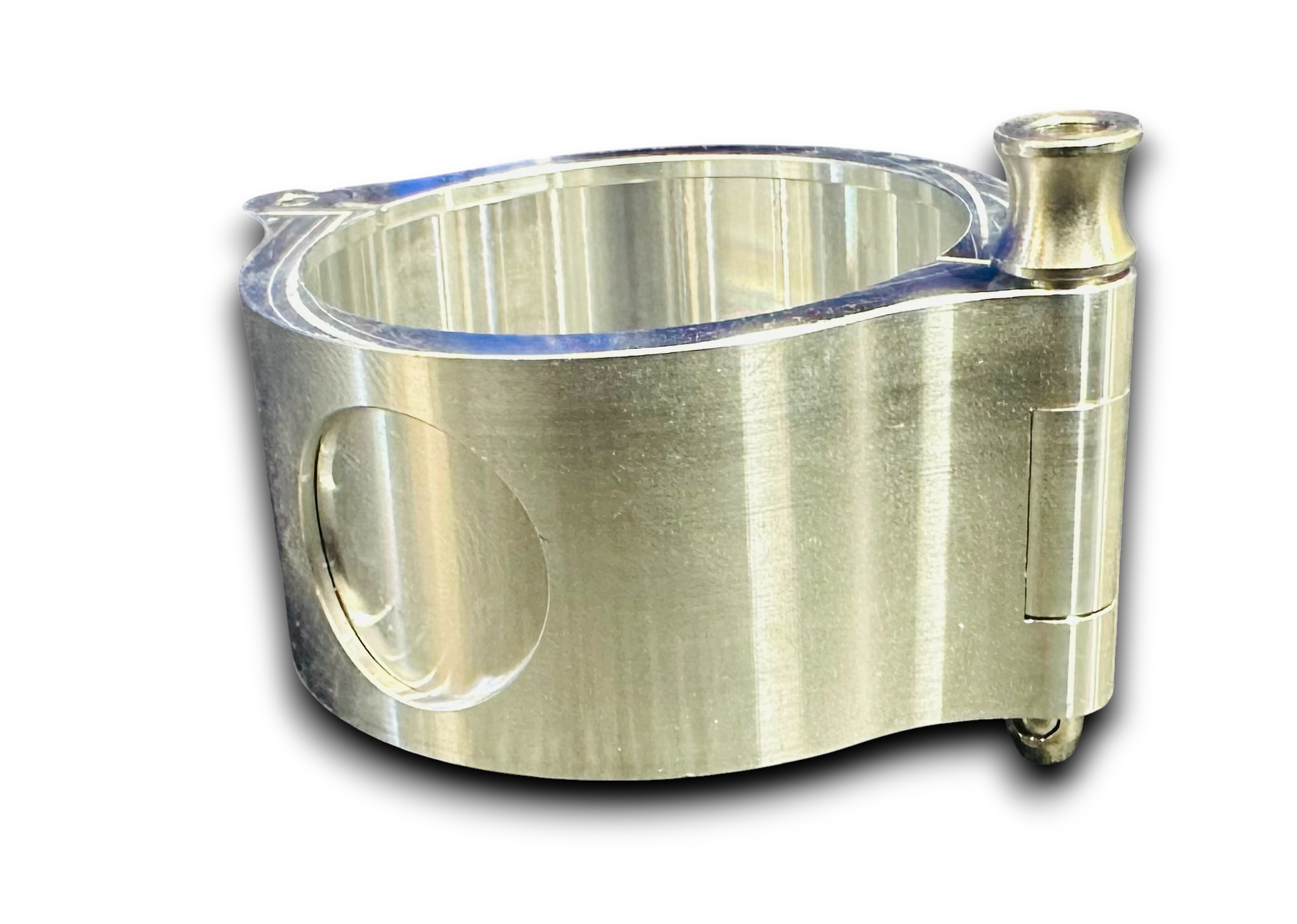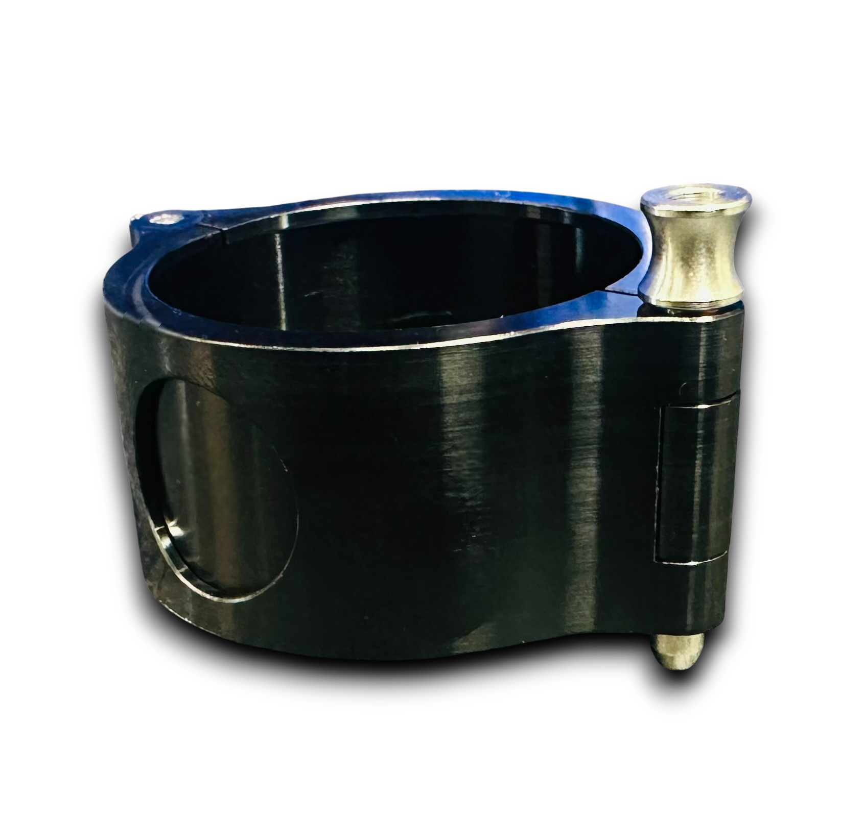 We designed this clamp as an economical solution for connecting -20 wiggins fittings. It features a light weight simple clamshell design that uses a quick pin to secure it when closed.