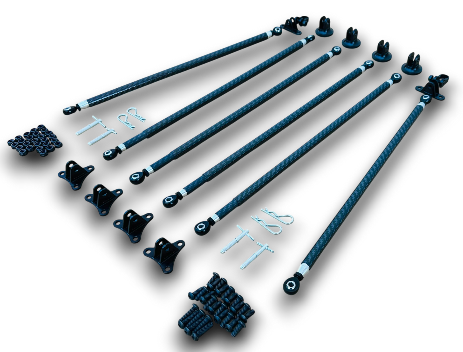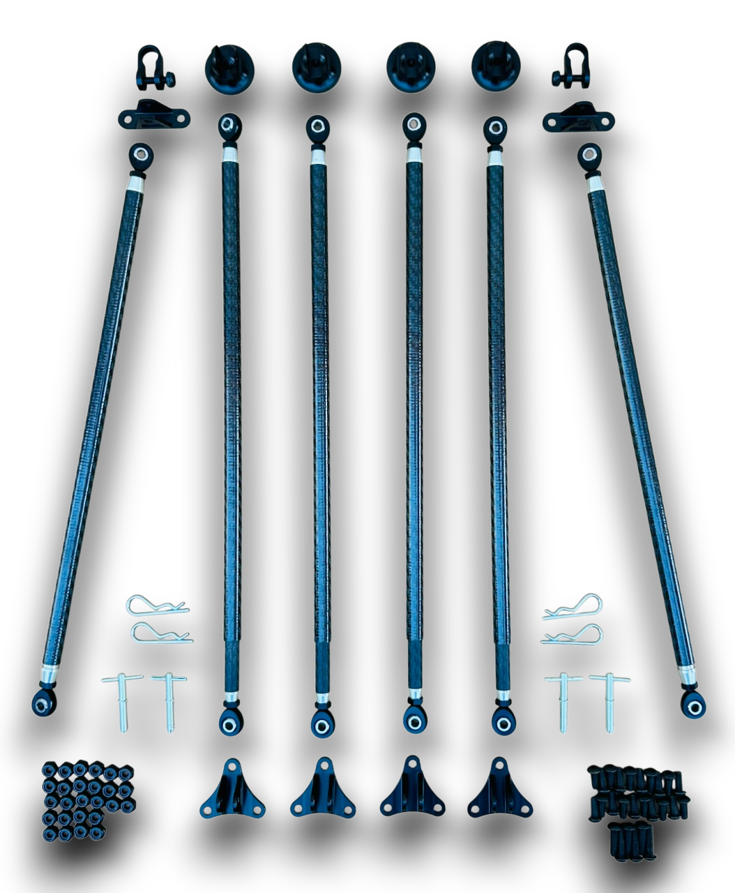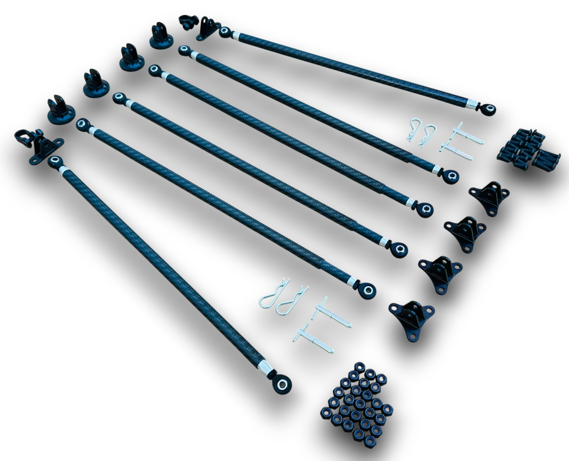 Our carbon strut rod kit represents the highest quality available. Extensive development ensured exceptional performance, precise fit, and reliable function. With universal compatibility and telescoping adjustability, this kit can accommodate nearly any wing setup with ease.