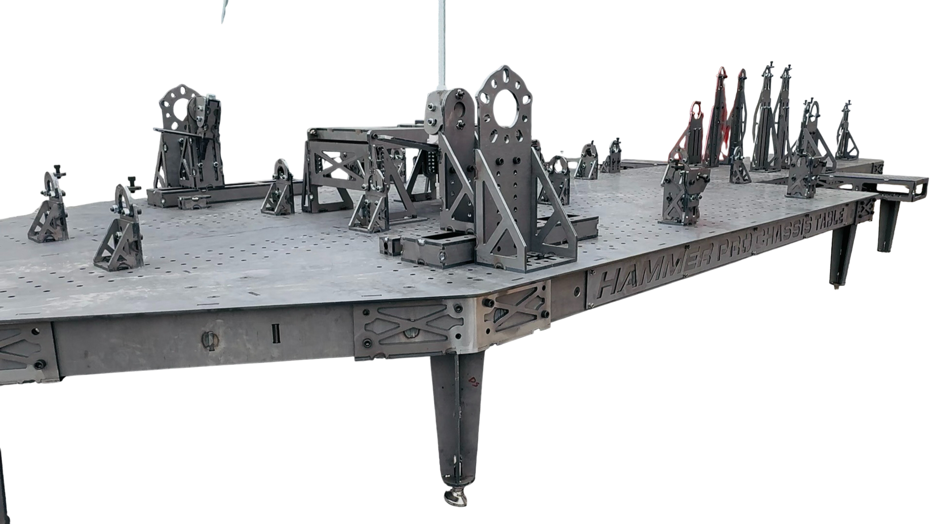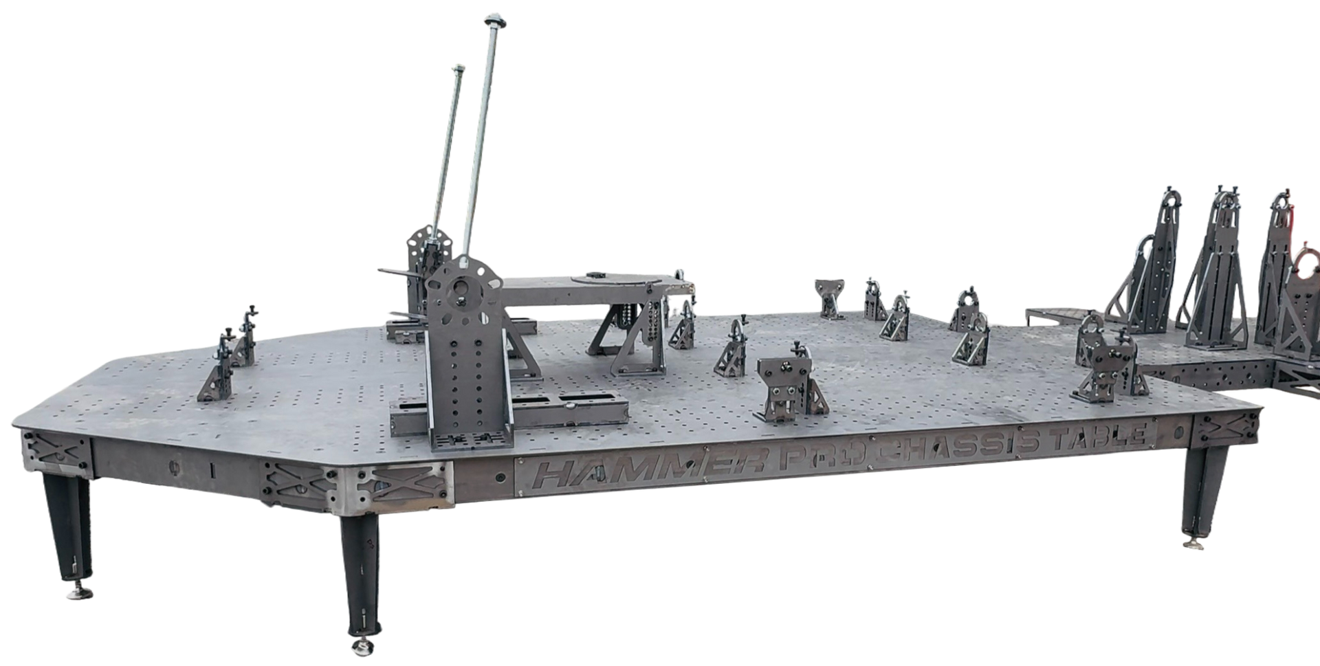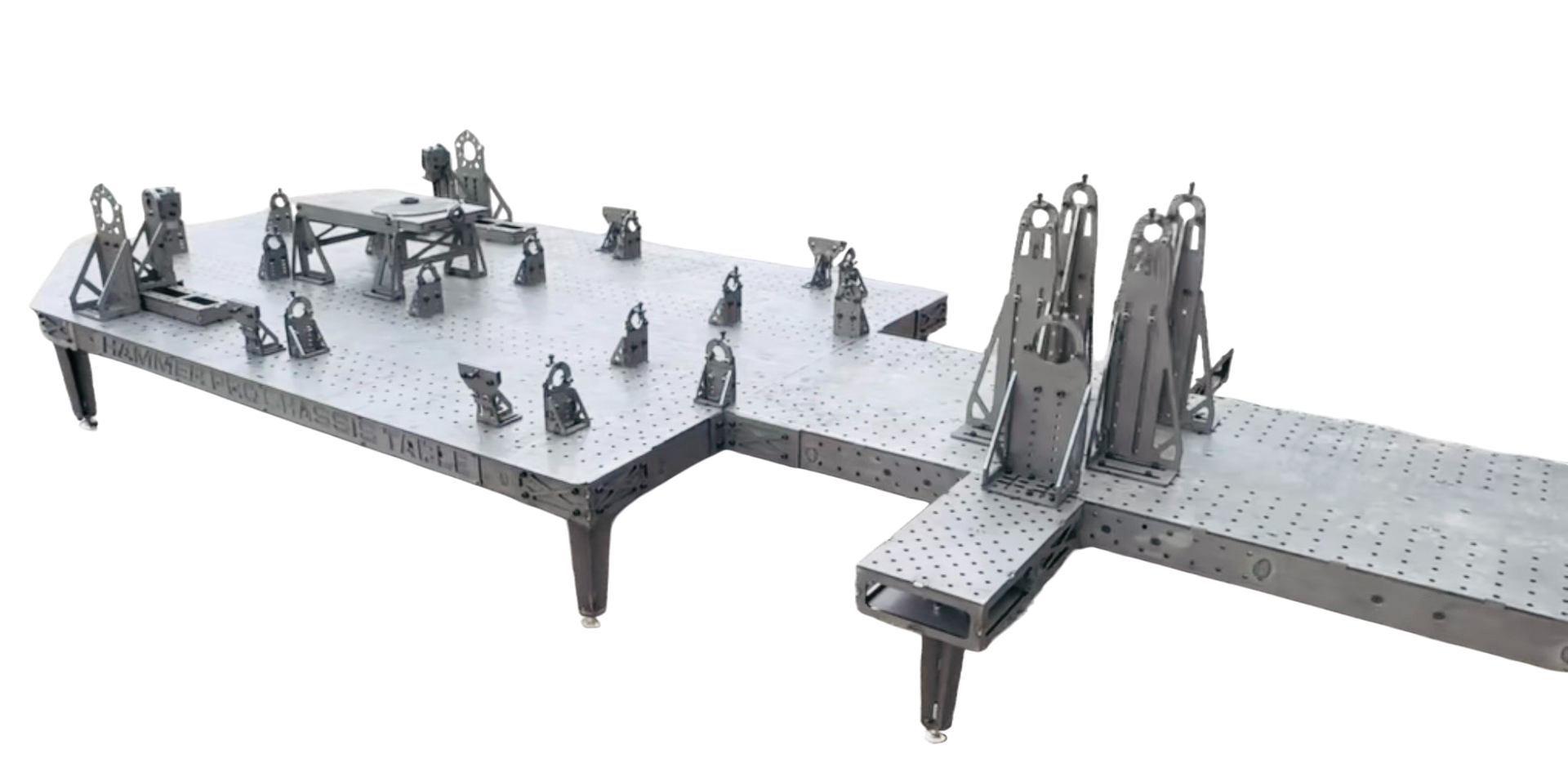Our new Hammer PRO Chassis Table is the evolution of everything we’ve learned from our proven beam-style version chassis table package. Designed to give chassis builders total control, unmatched capability, and seamless adjustability, this table becomes the central foundation of any serious race car build. From chassis setup to critical geometry alignment, to complete front and rear integration, every component has been purposefully designed to streamline workflow and elevate build quality.