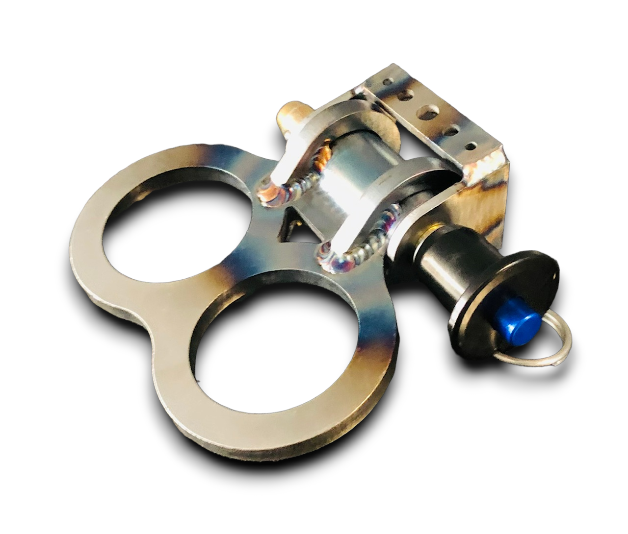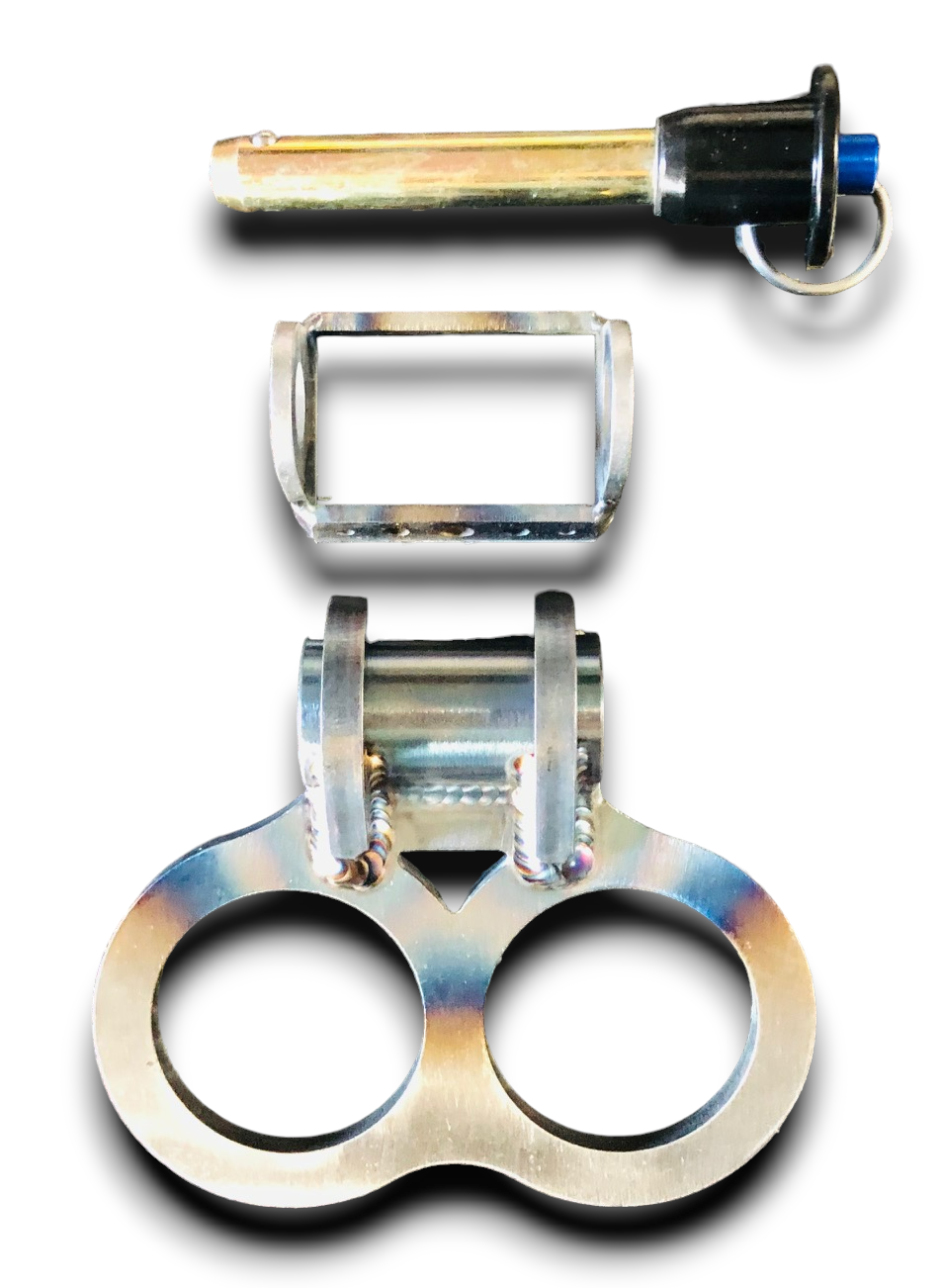 Our removeable tiedown hoop kit is a slick setup allowing for removal of the tiedown with a quick pin. No more strapping the car down using a fixed hoop on the housing damaging the paint or powder coat. Simply pull the pin and leave the hoop/pin with your tiedown straps.