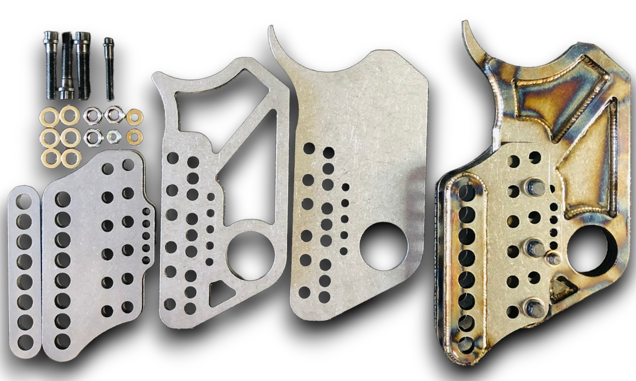 ***Requires TIG welding. The perimeter of the main bracket layers has an 1/8" step to allow for a good welding surface. Additionally, the lightening pockets serve as a perimeter for additional welding for maximum bonding and strength***